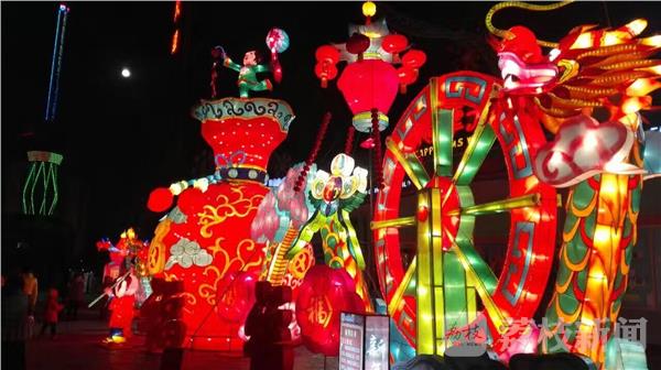 南通市探险王国里面元宵节的灯展,今夜聚集五万多人次。元宵节、赏灯、美食、美景、继诗词大会后,市民们沿用灯会的吉祥物来迎神接福,期盼来年五谷丰登,人 畜兴旺的美好愿望。
