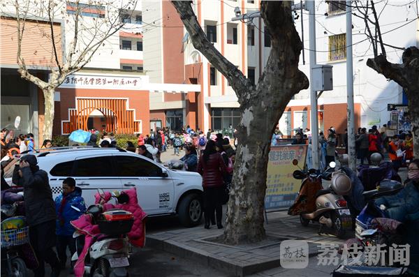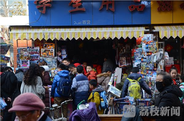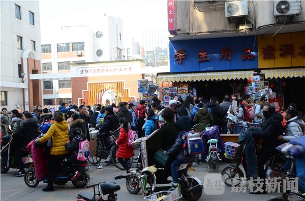 今天是2月12日,江苏淮安各中小学开学第一天,享受长达20天春节假期的同学们又快乐跨进了校门。下午两点,笔者在淮师第一附属小学发现:校门口人头攒动热闹非凡,周边各式摊点生意红火,尤其是学生用品的买卖更是火爆。