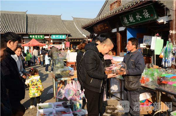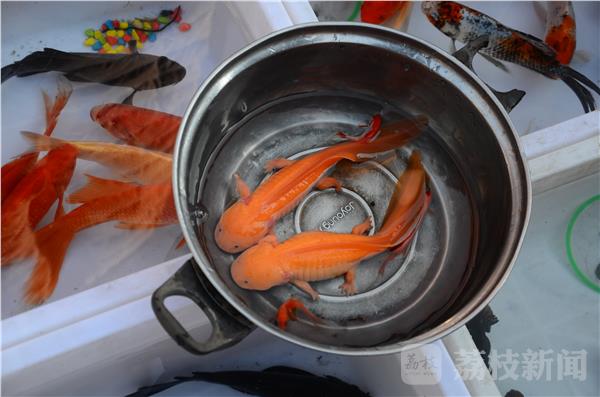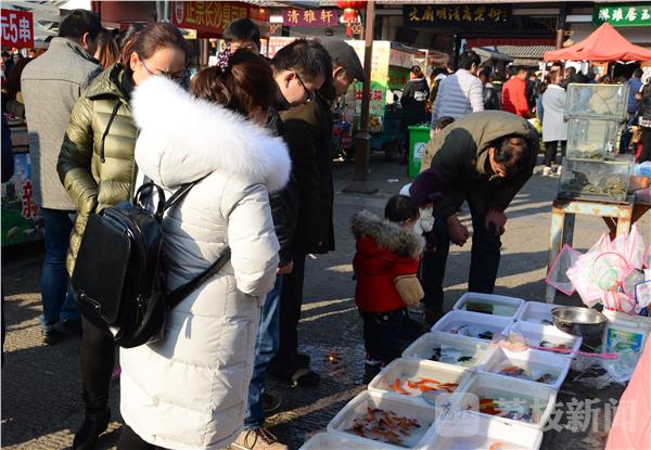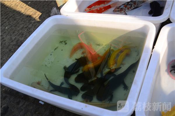 扁扁的脑袋上长着一对黑豆似的眼睛,拖着扁长的尾巴在水里游弋,它很萌,卖这个的摊贩告知叫六脚(角)恐龙。据说六角恐龙是一种极度濒危的物种,而在淮安文庙的花鸟市场里却能随意贩卖。
