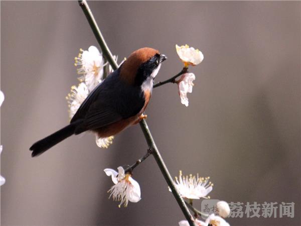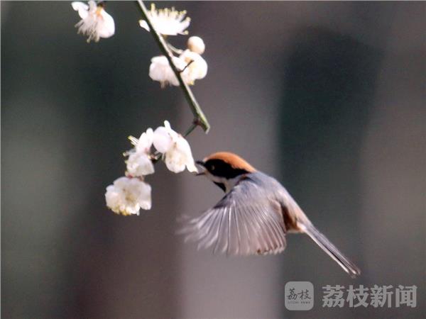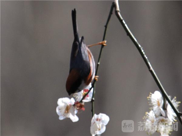 据南京鸟会杨先生称,“满山清香四溢梅花不但吸引来各地游客,就连中国最小的鸟儿红头长尾山雀也来闹新春喽!南京城內一般喜鹊较多,而红头长尾山雀在南京难得一见,这些鸟很胆怯,有人想用手机拍下它们的倩影,可人稍一靠近它们就飞走。”