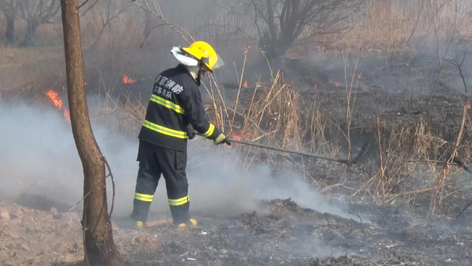今天下午1点左右,在浦口江北滨江新城江边,一芦苇荡突发大火,一时间浓烟滚滚。110,119和水警先后赶到现场,由于在江边,消防车进不去,十几名消防队员拿着铁扫帚,从着火点四周包围灭火。经过一小时左右,大火被扑灭。据了解,由于天气干燥,大火可能是有人在江北乱丢烟头引起。