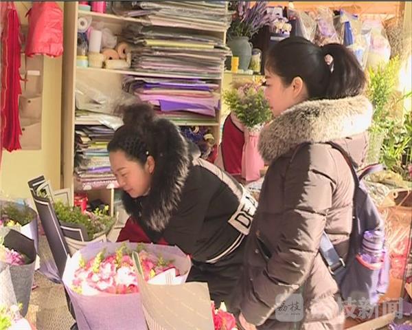 曾女士是上班族,趁着中午的时间,想来为闺蜜订一束玫瑰。她告诉记者,非常巧合,情人节和闺蜜生日撞上了,所以想订一束玫瑰,祝她早点把自己嫁出去。