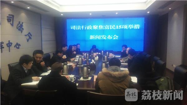 今天(2月14日),江苏省司法厅出台司法行政聚焦富民15项举措,包括:定期发布生活法律风险提示,开通法律援助绿色通道,实施法律援助名优工程,提供各种形式矛盾纠纷调解服务,减少公证证明材料,减免办理公证费用,建立公证存管平台,成立小微企业法律服务团,设立法律诊所,开通远程亲情视频会见系统,开展戒毒人员照管服务等。
