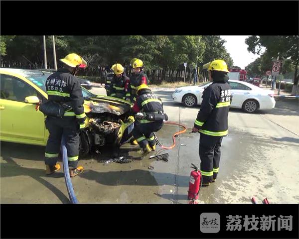 中队消防官兵到达现场后,发现两辆轿车相撞,一辆黄色轿车着火,火势处于猛烈燃烧阶段。了解情况后,中队消防官兵立即命令一组队员负责现场警戒工作;命令一组队员出1支水枪扑救大火。经过全体消防官兵约10分钟的奋力扑救,大火被完全扑灭。