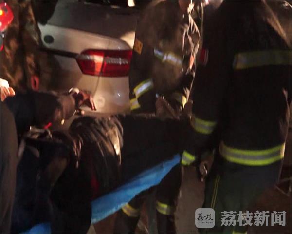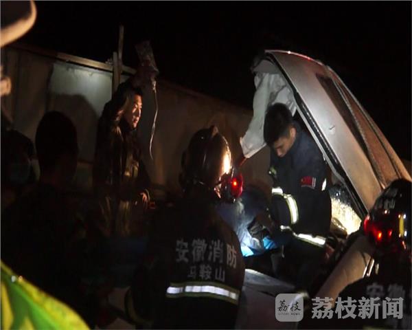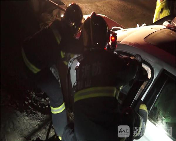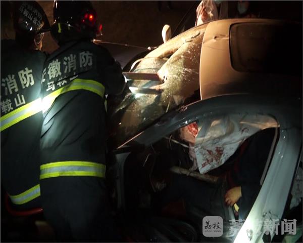 2月12日凌晨12点半左右,在位于安徽省马鞍山市含山县关镇方向两公里处鲁桥附近,一辆小轿车撞断道路防护栏,三节钢管从车头插入驾驶室,其中一根刺入驾驶员身体,情况十分危急,当地消防部门迅速赶往现场进行救援。