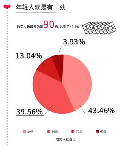 2016年,国人情趣消费的年轻化趋势更加明显,90后日益成为消费主导人群,成为情趣用品购买人数最多的人群,在所有年龄层情趣消费成交人数占比达到了43.5%。