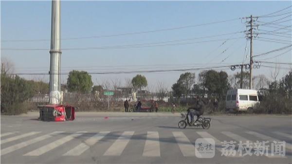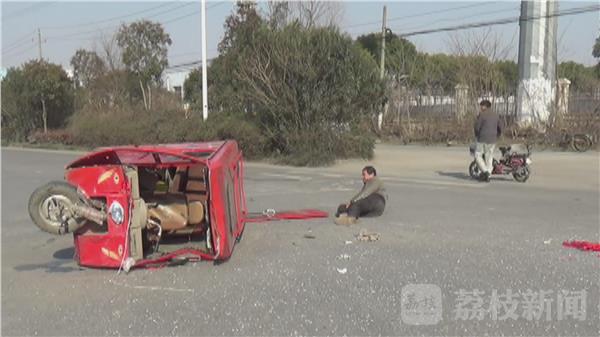 市民记者赶到现场时,只见这辆“电三轮”侧翻在路面上,边上躺着一名男子,不远处,一辆依维柯客车骑在隔离带上,右侧车门已经凹陷,车头受损严重。客车驾驶员一脸后怕地说:当时自己正由北向南经过扬州金港路与临江路交叉口,这辆“电三轮”突然窜出来,由西向北拐弯,结果碰上了。