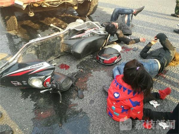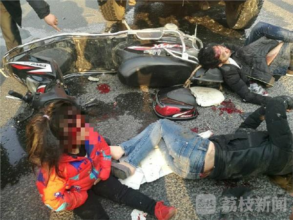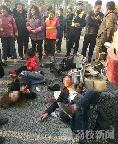 今天下午16点左右,在六合区横梁街道黄中社区宁通公路辅道与冶东路交叉路口,发生一起严重交通事故,一家三口,骑踏板摩托车与渣土车相撞,均受伤严重。事故发生后市民迅速报警,并且帮助维护现场秩序,110、120赶到现场迅速把伤者送往医院。从现场看摩托车已经被撞散架,两个大人躺在地上已经失去知觉,小孩满头是血,现场很是惨裂。目前驾驶员已经被控制,具体什么原因造成这次事故,目前交警部门正在调查中。