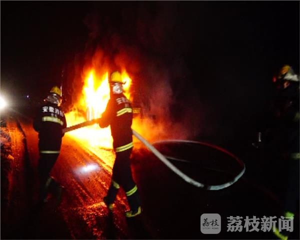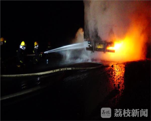 2月15号凌晨2点左右,在安徽省淮北市濉溪县赵集乡方向公路上,一辆满载30多吨石子的半挂货车突发大火,接到报警后,濉溪县消防中队立即出动救援力量赶往现场进行处置。