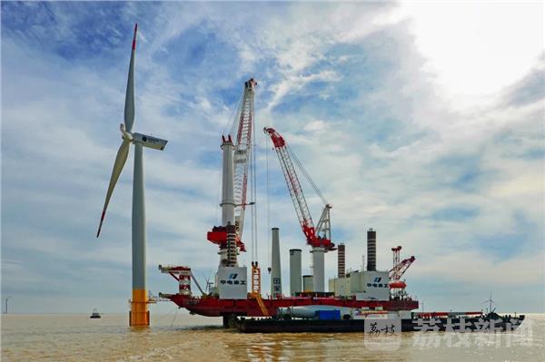 掠过万顷波涛、四季劲吹不息的海风驱动着风力发电机组的叶片悠悠地旋转,将绿色电力源源不断地输送到陆上,据了解,海上风电场的发电有效率高于陆上25%左右。“国家电投滨海县北区二期海上风电”是2月12日新开工的项目,该项目总规模40万千瓦,安装100台单机容量4兆瓦风力发电机组,总投资64亿元。据介绍,由国家电投在滨海县海上建设的一期风电项目已投入运行,4兆瓦风力发电机组叶片长62.5米,风机在海平面以上90米,一台机组满负荷运转每小时可发电4000度。