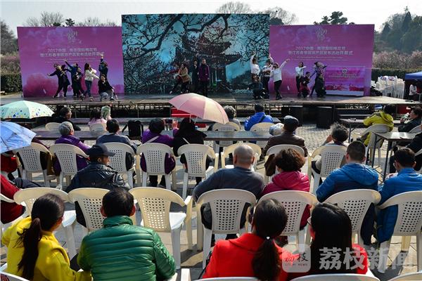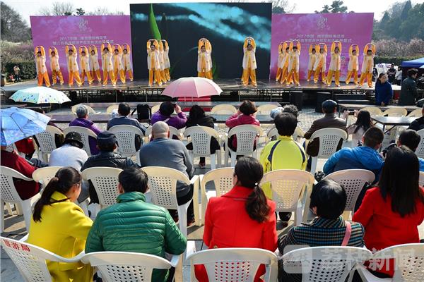 2017南京国际梅花节将于17日开幕。2月16日下午2点,荔枝新闻网友在明孝陵景区金水桥广场抢先观看了梅花节开幕式彩排。
