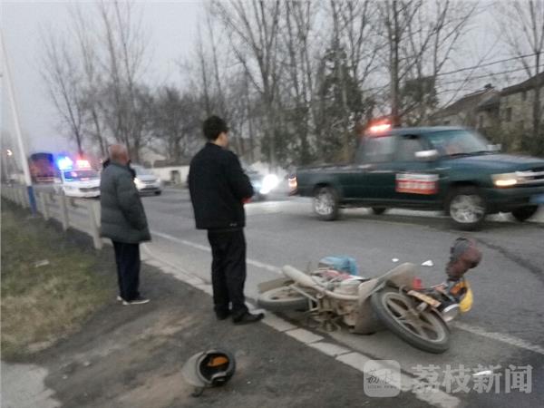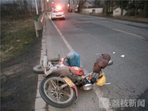 昨天(2月16日)晚上五点半左右,南京市六合区毛新公路上发生一起交通事故,一辆白色标志轿车行驶到新集社区贾营组附近时撞到一辆同方向行驶摩托车,摩托车驾驶员飞出十来米倒地受伤。事故发生后,六合交警龙池中队民警迅速赶到现场,并联系120把受伤男子送到江北人民医院救治。据现场一村民介绍:当时自己正在家里面吃饭,只听到路上“轰”的一声,跑出来一看发现一个人躺在离摩托车十来米地方痛苦难忍,庆幸当时驾驶员戴有头盔,只是脸部和身上软组织受伤,否则后果难以预测。