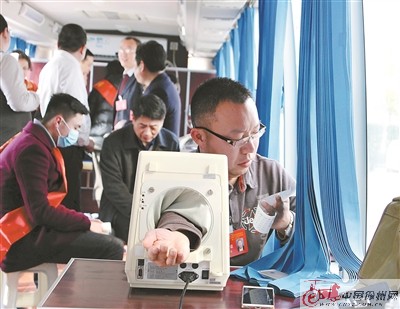 参加“两会”的代表、委员们在会议之余,体验到先进仪器科学测试体质状况的便捷。本报记者 仲冬竹 摄