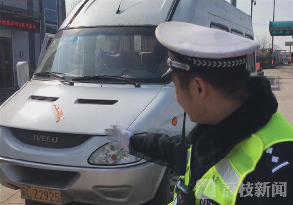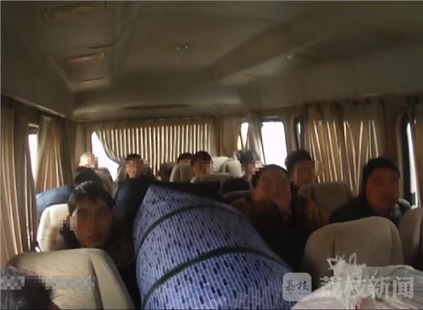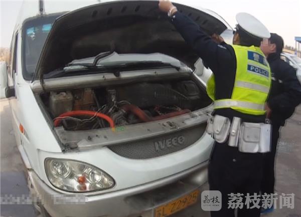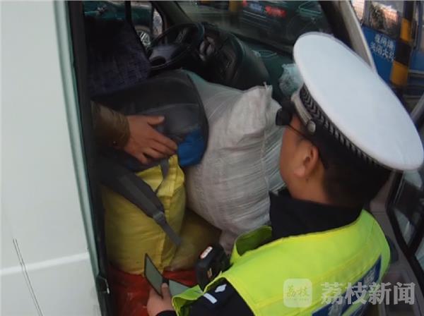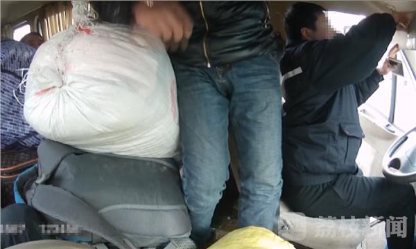 当天下午,民警在连霍高速苏皖省界对这辆依维柯例行检查,打开车门后堆在车门口的货物险些掉了下来。检查中民警发现,这辆车人货混装,不仅车门口堆满了货物,就连车辆中间的过道中也都堆放着货物,车上的乘客被堵在车厢内根本无法下车。不仅如此,民警发现这辆车的保险标志与车辆不符。