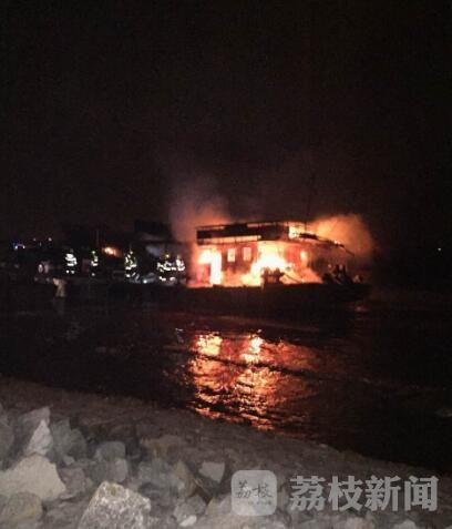 17日晚间11点多,南京江心洲江边,多艘船只发生爆燃。目击者称,这些基本是油船,其中一艘大船爆燃后,飞溅的火球引燃了周围的多艘船只,这些船只纷纷散开,有两艘没有来得及散开。