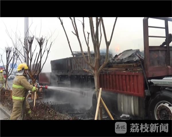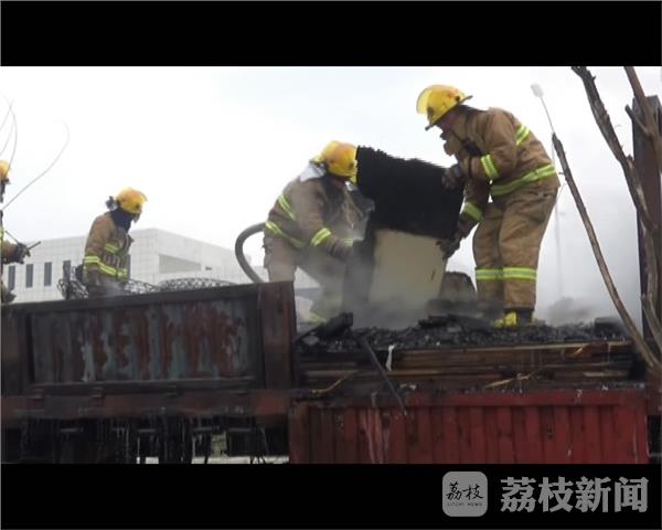 而据车主介绍,车上的货物主要为家具、木板等,是在行驶途中突然发现烧起来了。初步怀疑是过往车上有人随手丢烟头,被风吹落到自己的车厢里引起的火灾。