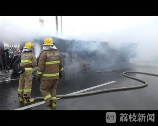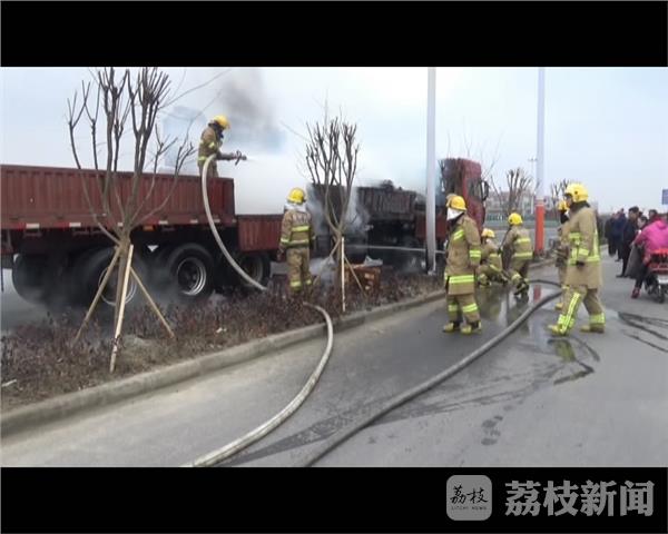 2月17日8时20分,泰州市消防指挥中心接到群众报警称,姜堰区东转盘附近一辆货车突然着火,接到报警后,当地消防立即调派警力前往现场处置。消防到达现场发现,着火的是大货车上的家具、板材等货物,火势较为猛烈,阵阵热浪扑面而来。为防止火势进一步发展蔓延,消防官兵根据现场情况,设立警戒,进行交通管制,避免发生意外事故。同时,迅速出三支水枪从不同的角度出水,对车上火势进行控制扑灭。经过现场官兵十几分钟的扑救,火势被成功扑灭。为防止复燃,消防官兵仔细检查起火部位,出水枪降温,清理货车上的杂物。所幸此次火灾事故发现及时,消防到场扑救迅速,未造成更大的损失。起火原因正在进一步调查。