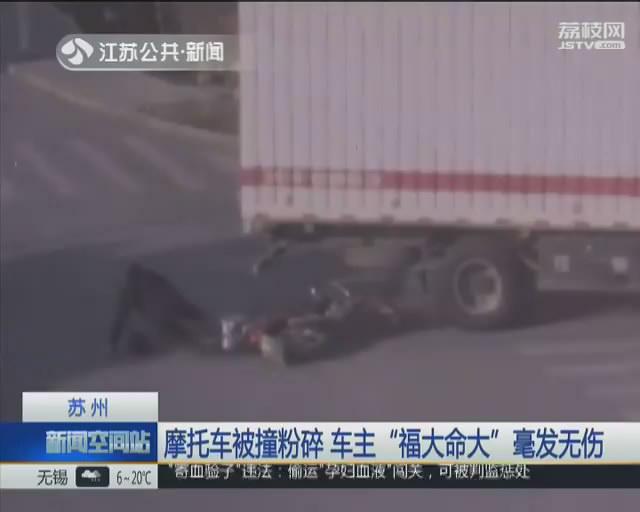 近日,苏州吴江的一个路口发生了惊险一幕!一辆大货车与摩托车相撞,摩托车被撞得粉碎,好在奇迹发生,驾驶员毫发无伤,来看看当时的监控。