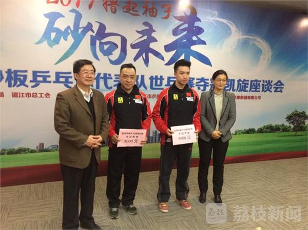 座谈会上,镇江市副市长曹丽虹和镇江市乒协执行主席陈苏,分别为严魏豪和肖克永颁发了5000元夺冠奖金。曹丽虹透露,作为全国乒乓球重点城市,镇江正在研究申办砂板乒乓球世锦赛相关事宜。