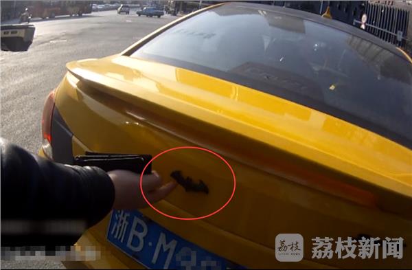 这辆黄色的轿车因为路口实线变道和走公交专用道,被执勤的鼓楼交警拦下例行检查。然而当民警对车辆进一步检查后,却发现这辆车的车椟竟然是“蝙蝠侠”标志。