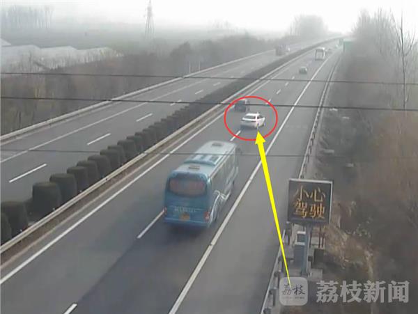 据监控显示,这辆白色轿车沿淮徐高速超车道行驶,突然驾驶员将车辆停在了超车道上。随后,驾驶员打开了双闪警示灯,便开始慢慢往行车道变更车道,此时从后方驶来的很多车辆都纷纷避让。