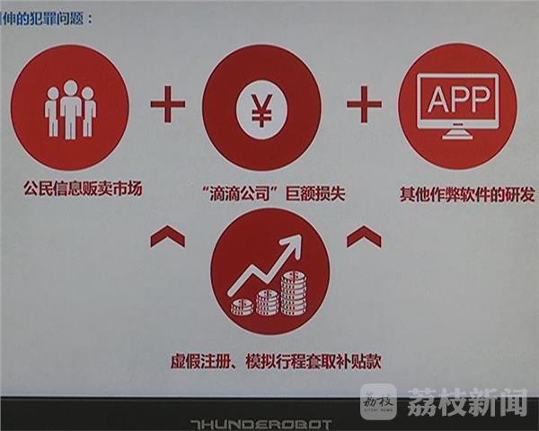 连云港市公安局网安支队案件侦查大队大队长李东泽:“在我们侦查破案过程中发现,犯罪嫌疑人利用网络购买大量的驾驶员信息,用来注册'滴滴司机端',并采取软件进行批量注册,提高注册效率。同时,犯罪嫌疑人还运用非法软件修改GPS位置信息、模拟行程,发布虚假行程,以此在'滴滴出行'平台进行刷单套现诈骗,骗取例如'首单奖励'等补贴。”