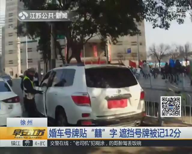 许多婚车为了图个喜庆,车上经常会张贴“囍”字,昨天下午,徐州交警在淮海西路执勤时,一辆正在迎亲的越野车却因车上贴得“囍”字被交警拦下罚款、扣分。