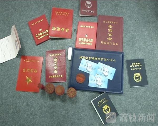近日,南京江宁警方发现辖区里办假证的小广告多了起来,经过几天的蹲守,警方发现,到处乱贴办假证小广告的是一名40多岁的女子。2月17日,女子在江宁万达广场附近约了买家交易,民警当场将她抓获。当时他们交易的是一本假的离婚证,民警随后在对嫌疑人张某住处搜查时,发现了各种假章和证件,不过并没有发现制作假证的工具。