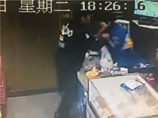 昨天晚上18时26分左右,太仓市区一家超市发生了惊险一幕,一名男子等候在收银台处结账,当收银员将商品装入购物袋时,男子突然一把拽住收银员的衣领,右手拿刀抵住收银员的脖子。