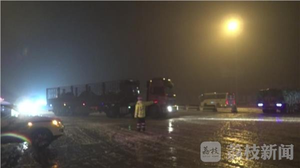 2月21日下午2点多,徐州开始普降大雪。当日下午5点40分,受降雪影响,徐州三堡公安检查站民警,对淮徐高速苏皖省界收费站进行封闭。当晚10点,徐州境内的G2、S49两条高速正常通行,其余高速均以交管部门发布及时路况为准。截止今天(0222)下午3点钟,徐州S69徐济高速一级管制(禁止危险品和大客车通行),进山东方向关闭;G3京台高速因山东降雪进山东车多缓行、G30连霍高速(徐州段、邳州段和新沂段)以及G2513徐淮高速徐州段三级管制;G2京沪高速进山东方向因山东降雪车多缓行、S49新扬高速新沂段通行正常。徐州交警提醒:因路面湿滑,高速公路行驶车辆,请勿超速,安全谨慎驾驶!