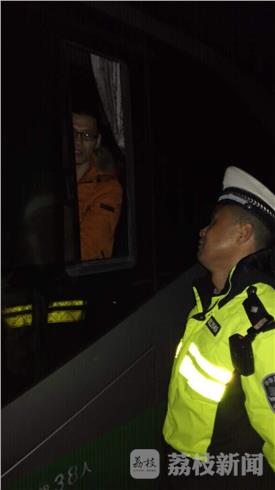 余警官接警后火速赶到服务区,成功找到被困男子,隔着大巴玻璃窗,余警官了解到:该男子姓沈,江苏射阳人,下午4点半从南京小红山客运站乘坐大巴车返回射阳,因较为疲惫,上车后便躺在后排睡着,醒来后竟发现车辆停靠在服务区内,车门反锁,车上空无一人,随后便出现了以上报警一幕。