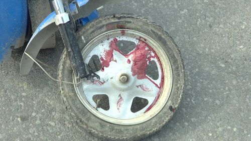 《关注》记者赶到事发现场时,受伤环卫工刚被送往医院救治。电三轮保洁车前轮被整个撞断,车上、地面留有不少血迹。目击者说,肇事的是一辆农用货车模样的机动车,撞了人后,驾驶员没停,掉头就逃跑了,而且车上没有悬挂号牌。