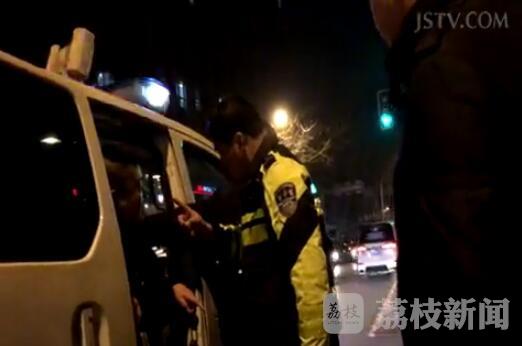 2017年2月23日晚上10时许,在南京市鼓楼区广州路省人民医院门口,红绿灯路口,一位30岁多左右的男子骑助力车涉嫌醉驾,刮碰前方的白色别克轿车,懒地不起,满口胡言,并怒骂别克司机,被报警赶来的警察强行带走醒酒。