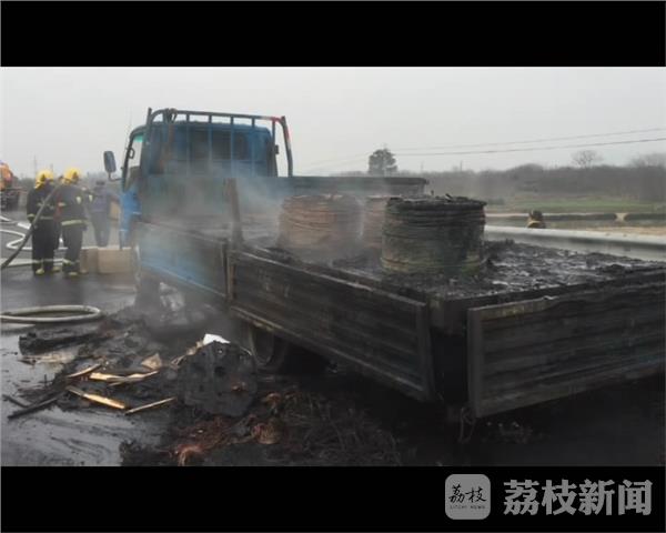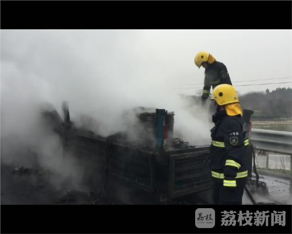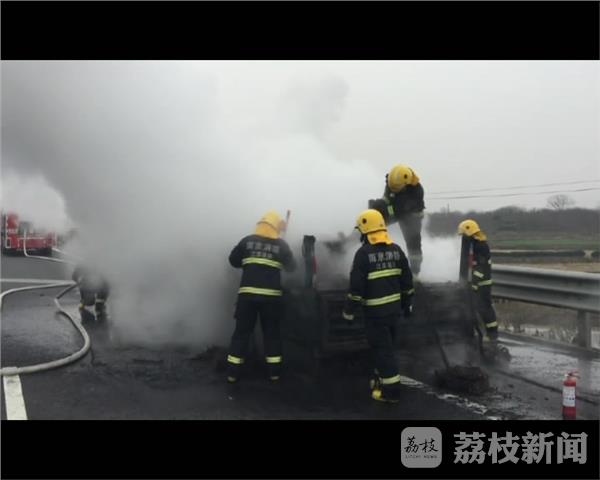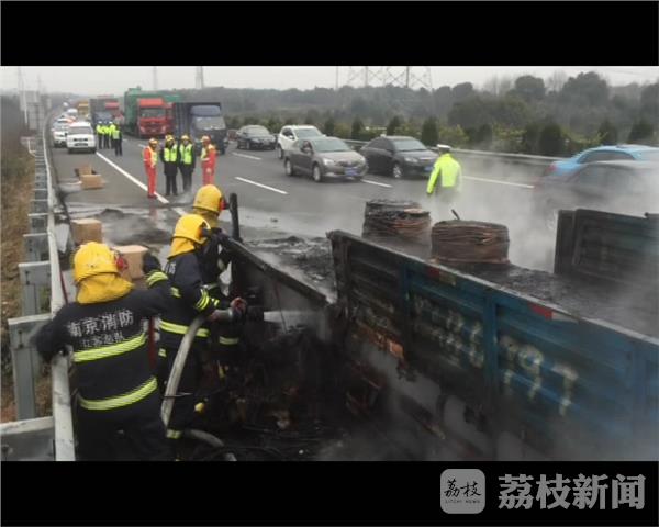 今天(2月24日)上午8点多,在溧马高速往马鞍山方向江宁横溪出口附近,一辆货车突然自燃,消防随后赶往现场救援。