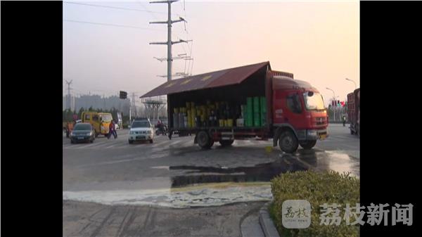 2月24日下午四点半的时候,南京栖霞区三环路与经天路路口,一辆满载着一千多桶机械用油的大货车在转弯时,由于车速过快,车上的油洒了出来。