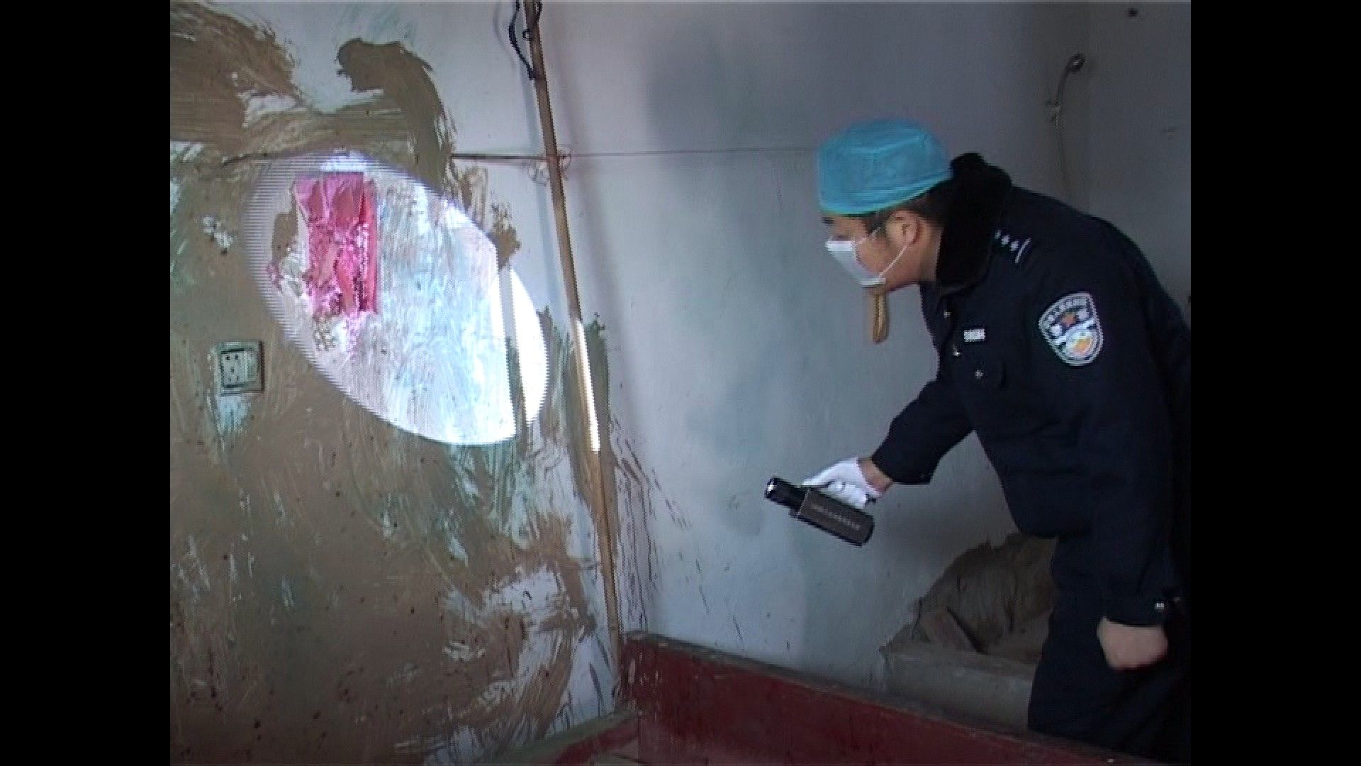 当时嫌疑人黄某对受害人唐某用工具进行疯狂砍杀,砍杀过后血迹沾到墙上,黄某为了掩盖找来泥浆,对墙面进行粉刷。