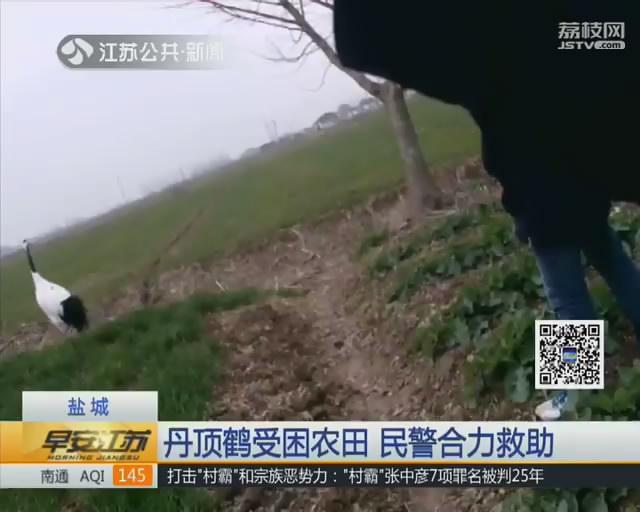 23日的下午,盐城大丰区公安局接到群众报警,在当地小海镇江北村的农田里,发现一只丹顶鹤。如此珍贵的国家保护动物,怎么会落在农田里呢?