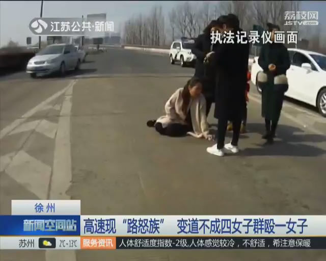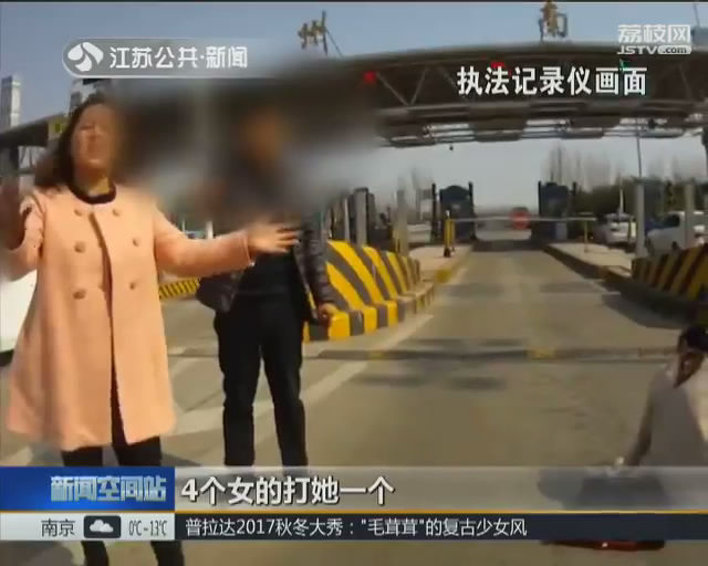 昨天下午,在连徐高速徐州南收费站,因为争道抢行,四名女子下车当街群殴另一辆轿车上的女乘客。