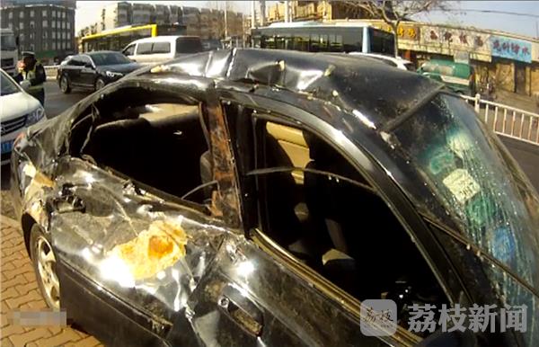 2月25日下午,徐州鼓楼交警在复兴北路响山路口执勤时,发现一名男子驾驶一辆严重变形的事故车在路上行驶,这辆原本是5座的轿车,因为事故导致右侧车门严重变形,车内只有左侧两座还可以勉强坐人,而驾驶员却仍然开着这辆车在路上跑,非常的危险。