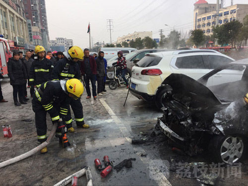 据轿车驾驶员说,他在附近做生意,昨晚将车停放着这里,一大早他将发动机启动后便去店里,想不到不久突然起火了。轿车驾驶员说,由于自己的轿车紧挨着好几辆汽车,起火时他非常紧张,赶紧从自家店里拿来了十几个灭火器进行扑救,可是根本无济于事。