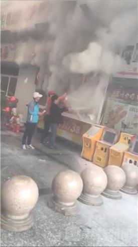 据旁边的炸鸡店老板石浩告诉记者,事发时该速食店无人,一逛街市民发现里面有烟冒出,立即大声喊“着火了,着火了”。石浩听到呼叫后,立即跑过去查看,发现小店内有浓烟和火苗窜出,随后他又返回店内拿灭火器准备灭火。