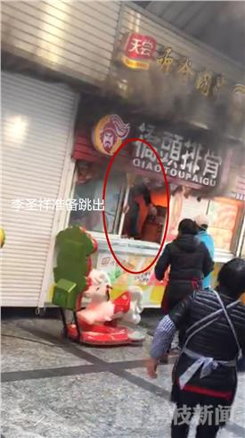 记者在微信网友提供的现场视频看到,火宅发生后,附近商户高呼“着火了、赶紧灭火”,有市民报警、有几位市民拿灭火器灭火,也看到李圣祥砸玻璃奋不顾身爬进店内关电源跳出的感人一幕。据了解,李圣祥今年54岁,平时是个热心人,经常帮助他人。