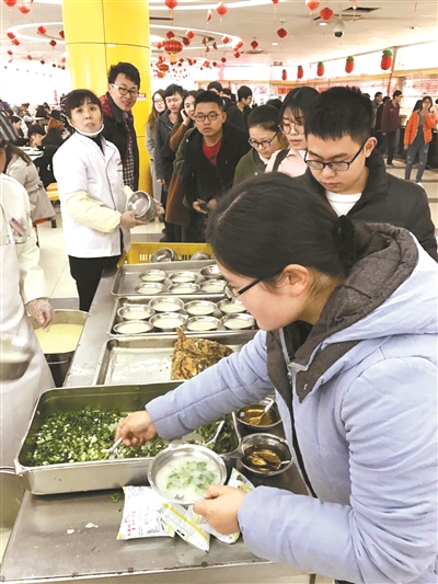 环测学院15级博士生宁一鹏和师兄弟们从朋友圈了解到镜湖鱼免费供应的信息后,在11点10分就来到二食堂一层供应窗口开始排队,“早点来排队,一定要品尝一下镜湖鱼。”宁一鹏说,“矿大的食堂非常干净,而我们镜湖的水也非常干净,平时经常看到工人在那里打捞水草之类的,所以对镜湖鱼非常放心也非常期待。”