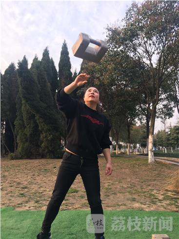 3月1日早晨,记者来到高港生态园健身场内,看见石锁爱好者正在练习各种动作。一群男人中间有几位女性特别显眼,笨重的石锁在她们手中玩出各种花样,显得轻松自如。