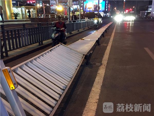受新一股冷空气影响,南京遭受大风降温天气,2017年3月1日下午开始,南京上空大风呼啸,晚上7时30分,南京新街口金鹰商场楼下,王府大街与汉中路十字路口,一段数十米长的马路隔离栏被大风刮倒,连根拔起,由于是晚上行人较少,道路通行未受影响。