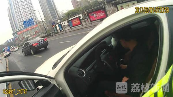 2017年3月1日早高峰期7点50左右,南京交警一大队民警在太平北路长江路路口执勤时,接到指挥中心指示:在南京图书馆西门靠近公交站台的位置,由北往南的机动车道上停着一辆白色的小轿车,过了好几个信号灯都不走,民警立即前去查看。通过前窗玻璃,民警发现驾驶座上有一名年轻男子低着头,似乎睡着了,民警一边敲打驾驶员旁边的车窗玻璃试图唤醒他,一边把着车门。不一会儿,驾驶员睡眼惺忪地抬起头,摇下车窗,民警打开车门,顿时一股浓重的酒气扑面而来。民警立即让他把车挂到空档上,同时拔下钥匙,让驾驶员下车说明情况。男子磨磨唧唧不肯下车,还从口袋里掏出大量现金试图掩盖自己的违法行为,民警当场严词拒绝。没想到男子还不死心,佯装“乖乖下车”,却趁民警不注意拔腿就跑。民警立即追赶,男子拼命挣脱向公交站台跑去,由于避让不及撞上了一个骑电动车的人。最终男子承认自己喝了酒,酒精检测仪吹气显示的数值为93mg/100ml,涉嫌醉酒驾驶。当民警带着该男子去往医院进行血液酒精浓度检测时,该男子又故技重施,想要贿赂随行的警务人员,民警不予理睬。
