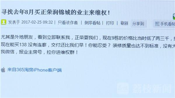 近日,网上有消息称,江北某楼盘加推的房源均价比之前低了每平方米数千元,导致他们这批业主损失几十万元。因此呼吁业主们联合起来进行维权,要求退房。记者今天(3月3日)上午来到了这家楼盘的售楼处,发现网上所提到的楼盘已全部售罄,现在在售的只有同一开发商所售的相邻的另一个楼盘。记者了解到,与上次开盘每平方米三万元的价格相比,该楼盘上次加推的价格有轻微的下调。销售解释,调价并非由于滞销,而是出于政策限价的原因。