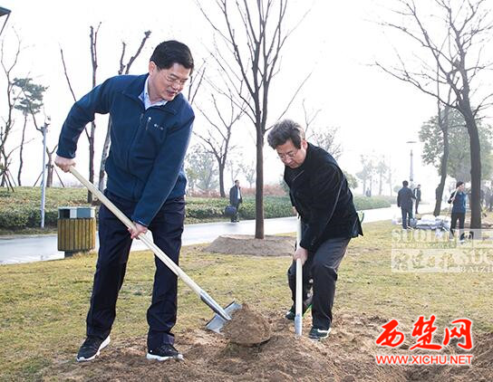 西楚网讯 在第39个全民义务植树节来临之际,宿迁市委书记魏国强,市委副书记、市长王天琦等市四套班子领导,一起来到古黄河水景公园,共同植下了五届市委纪念林,为生态宿迁再填绿色。