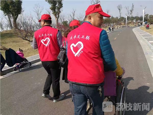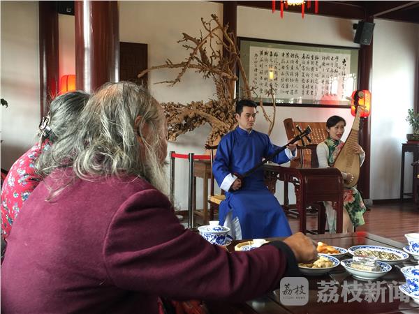 走累了,口渴了,可以信步走进沁香园茶楼,一边品茗吃点小食,一边欣赏娓娓动听的苏州评弹。有些游客可能还不能完全听懂评弹,但吴侬软语的韵味恰似这暗香浮动、悄然绽放的梅花,人有些不经意,但彻骨透心,终不能辜负。在当地,不少老人、残疾人也想一睹梅花绽放、游人云集的盛况,大丰义工联的义工们把他们接到景区,推着他们观赏梅花,享受春光的美好。