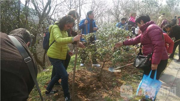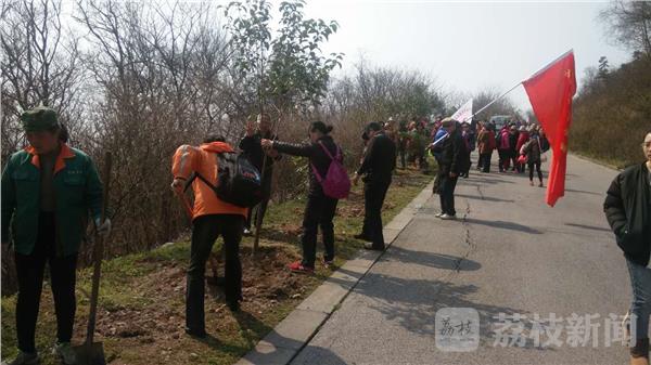 上午9点半,来自南京江宁、玄武、鼓楼等9个区的协会成员,集中到南京白马公园门口,乘坐3辆大客车,前往幕府山风景区植树。